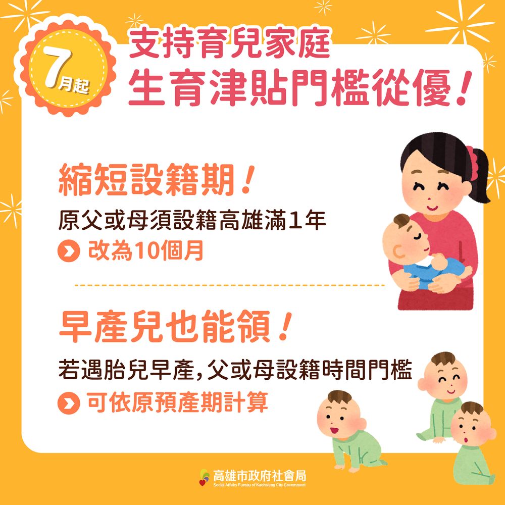 高雄市生育津貼及坐月子到宅服務114年7月1日起放寬設籍規定